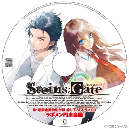 The Laboratory Members' Round Table Meeting Drama CD was included with a limited edition version of the Steins;Gate manga. This CD includes 4 dramas, all of which describing the shenangians that occur in the Future Gadget Laboratory, such as discussing about the rent perpetually increasing and Daru constantly playing eroge games.