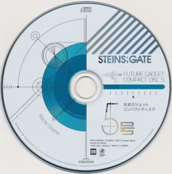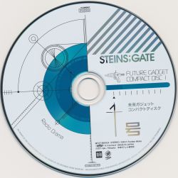 This "Future Gadget Compact Disc" was included with Vol. 1 of the Steins;Gate Blu-Ray. The disc includes the first 5 dramas of the "Hohoemi Douga no Metafiction" series, logging the antics of lab members in news of them getting an anime series. The disc also includes part 1 of "Oudou Teishiki no Hot Spring" which shows the lab members' surprise vacation to a hot spring.