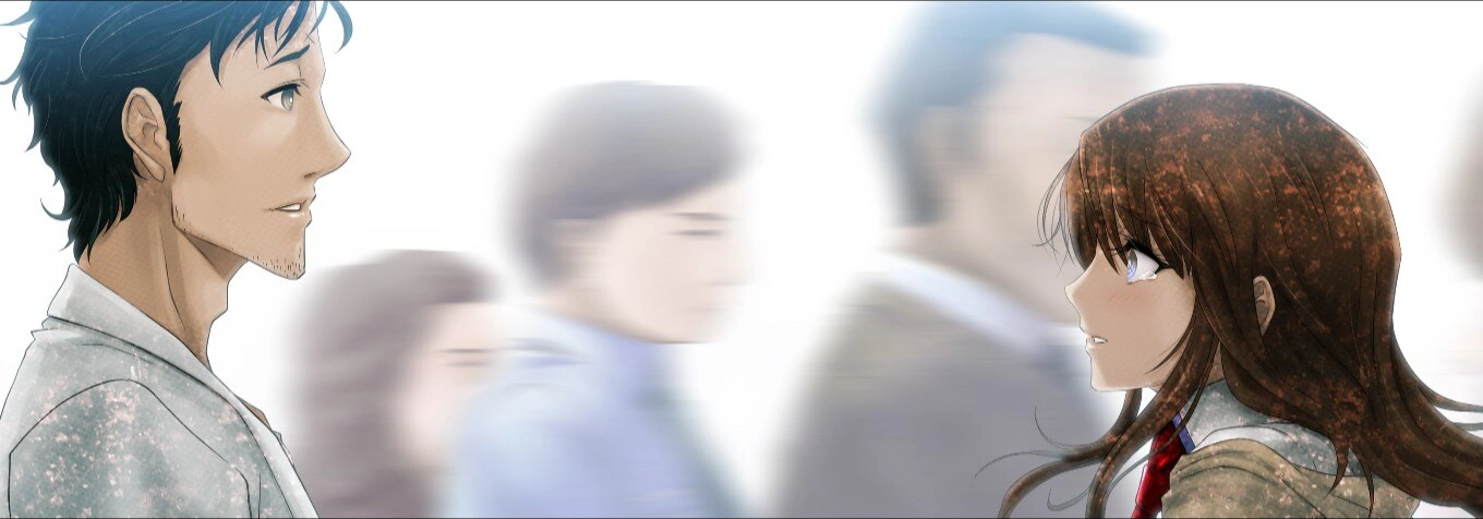 Okabe and Kurisu finding each other on the Steins Gate World Line